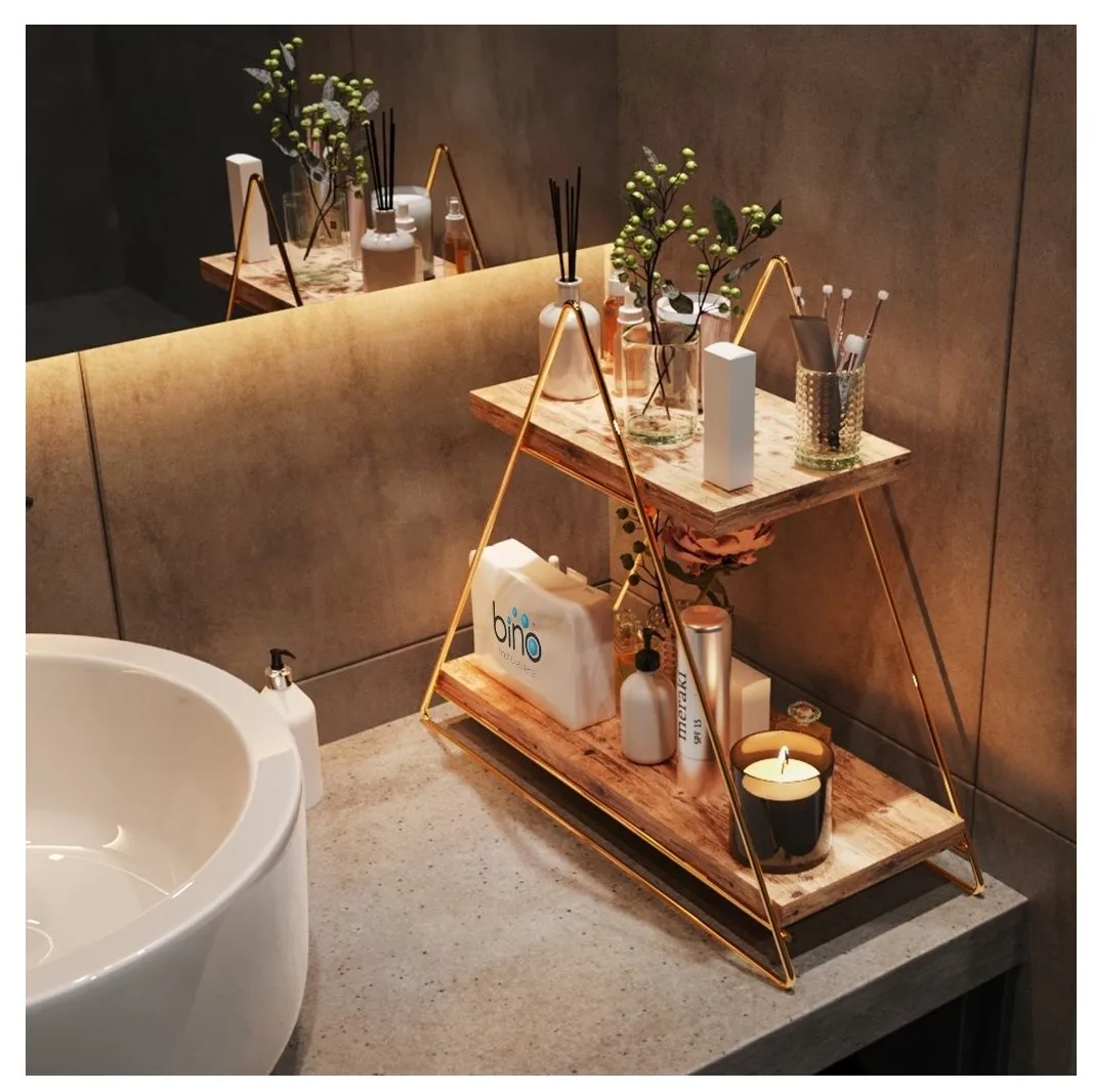 - Best Solid Pine Wood Table Service Rack Triangle Stainless Gold Premium Shelf Organizer Bathroom Kitchen Living Room Storage Hot
